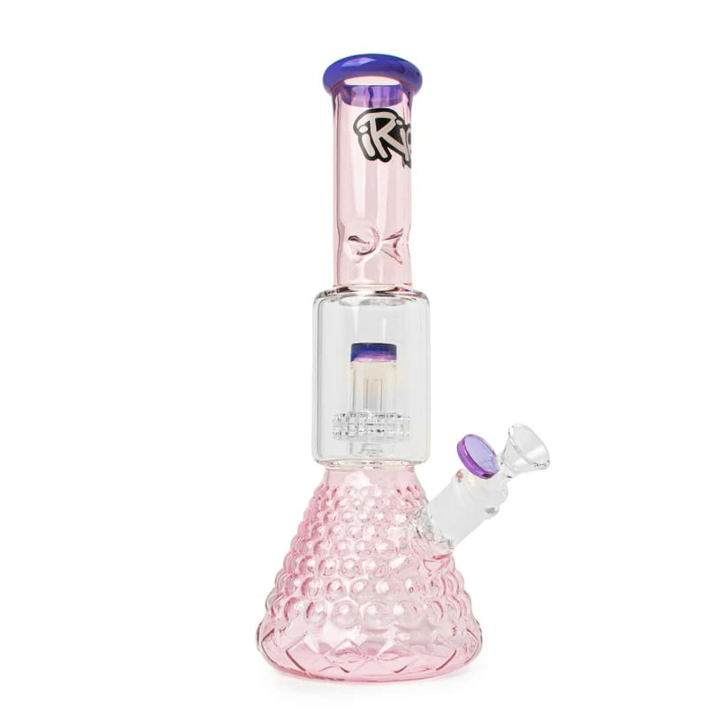 iRie™ is coming in hot with these two-toned, textured base beauties. Raise your hand if you’ve ever seen a textured base like this…..we didn’t think so, and we’re proud to offer it to you. At 13.5” tall, this dual chambered water pipe comes with a matching colour showerhead perc and pull-out handle.