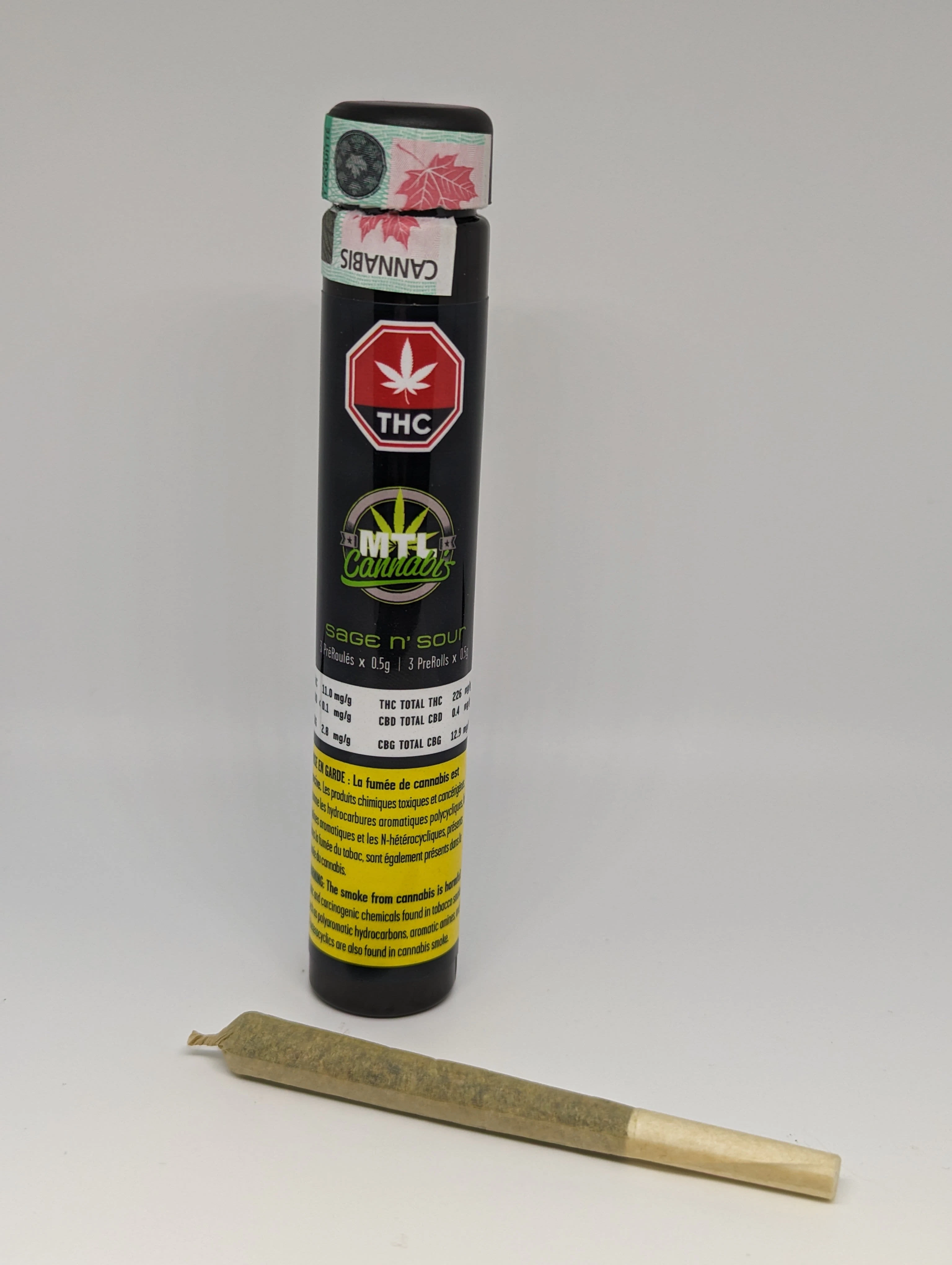MTL Cannabis Sage n' Sour is a classic sativa cross of Sour Diesl and S.A.G.E. and over 1% CBG. The unique terpene profile delivers a pungent cedar and citrus aroma with a flavourful smoke of pepper and gas.